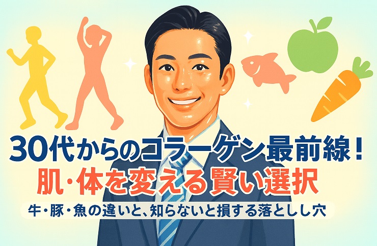 コラーゲンは、私たちの体にとって不可欠なタンパク質であり、肌のハリや弾力だけでなく、骨、関節、血管、さらには消化器の健康まで、全身の機能維持に深く関わっています。25歳頃から体内のコラーゲンは減少し始め、多忙なビジネスライフにおける不規則な食生活やストレスは、この減少をさらに加速させます。結果として、肌の衰え、関節の違和感、疲れやすさなど、様々な「老化のサイン」として現れる可能性があります。本稿では、コラーゲンの種類別の特徴や注意点を深掘りし、多忙な30代ビジネスパーソンが、自身の美容と健康を最適化するための「賢いコラーゲン選択」と「落とし穴」を徹底解説いたします。