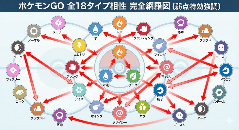 | 👊 かくとう | ⚪❄️🪨😈🛡️ | ☠️🦅🔮🐛🧚 👻霊(二重) | 🦅🔮🧚 | 🐛🪨😈 |
